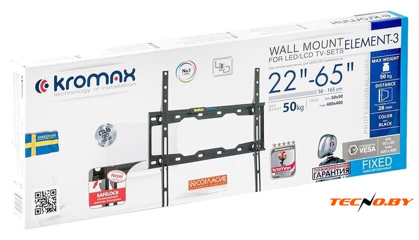 для ЖК-телевизоров, 26-55", настенный, поворотный, встроенный уровень, наклон 15°, поворот 180°, цвет черный