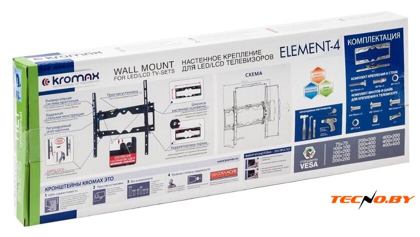 настенный кронштейн для ЖК-телевизора 26-55", наклон 15°, цвет черный