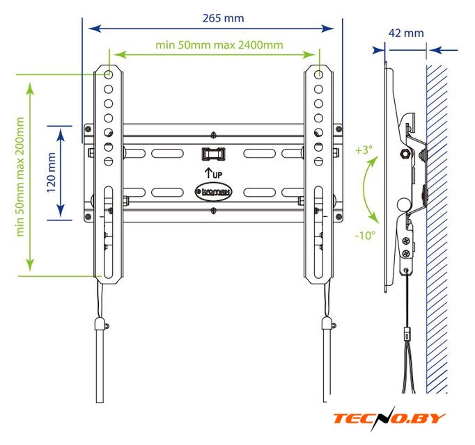настенный кронштейн для ЖК-телевизора 20-43", наклон 10°, поворот 90°, цвет черный