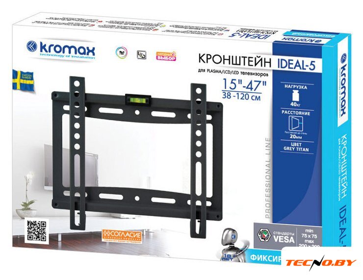 для ЖК-телевизоров, 13-42", настенный, встроенный уровень, наклон 8°, цвет черный