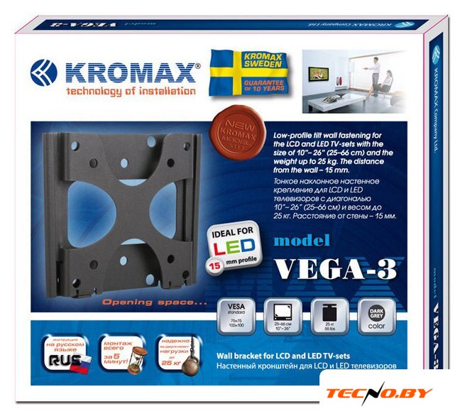 для ЖК-телевизоров, 26-65", настенный, цвет черный
