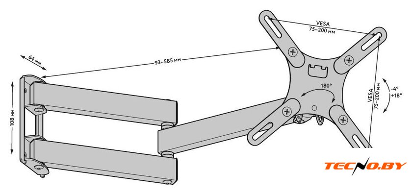 настенный кронштейн для ЖК-телевизора 23-42", наклон 20°, поворот 180°, цвет черный