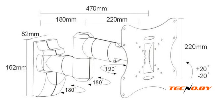 настенный кронштейн для ЖК-телевизора 20-43", наклон 10°, поворот 90°, цвет черный