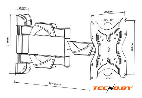 настенный кронштейн для ЖК-телевизора 15-55", наклон 12°, поворот 180°, цвет черный