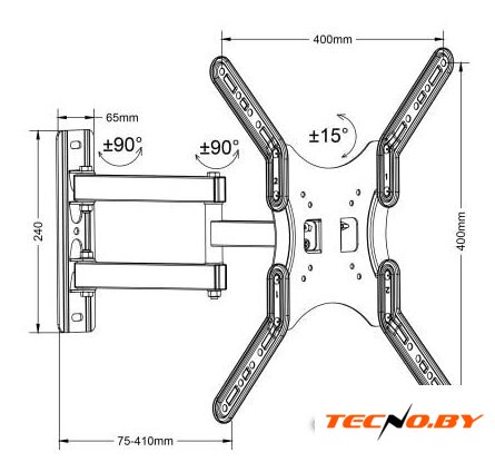 настенный кронштейн для ЖК-телевизора 15-55", наклон 10°, поворот 180°, цвет черный
