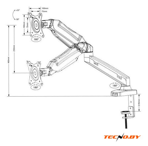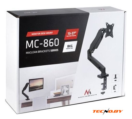 настольный кронштейн для ЖК-монитора 13-27", наклон 90°, поворот 360°, цвет белый