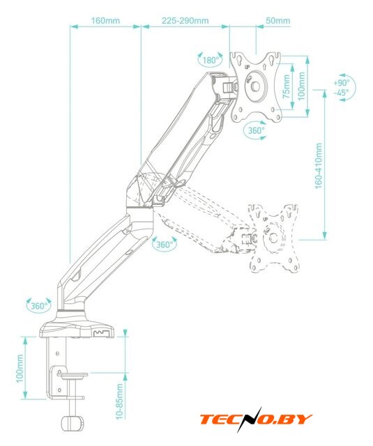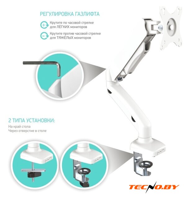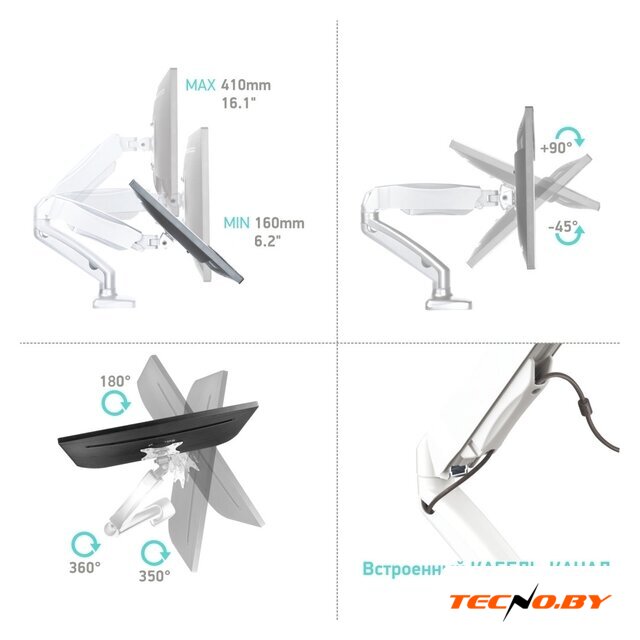 настольный кронштейн для ЖК-монитора 13-27", наклон 50°, поворот 180°, цвет черный