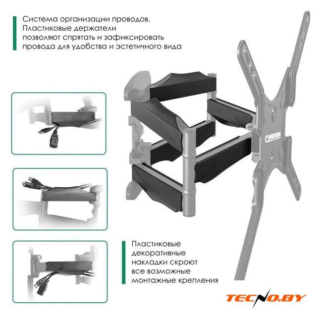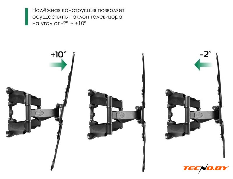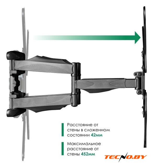 для ЖК-телевизоров, 32-55", настенный, поворотный, наклон 22°, поворот 180°, цвет черный