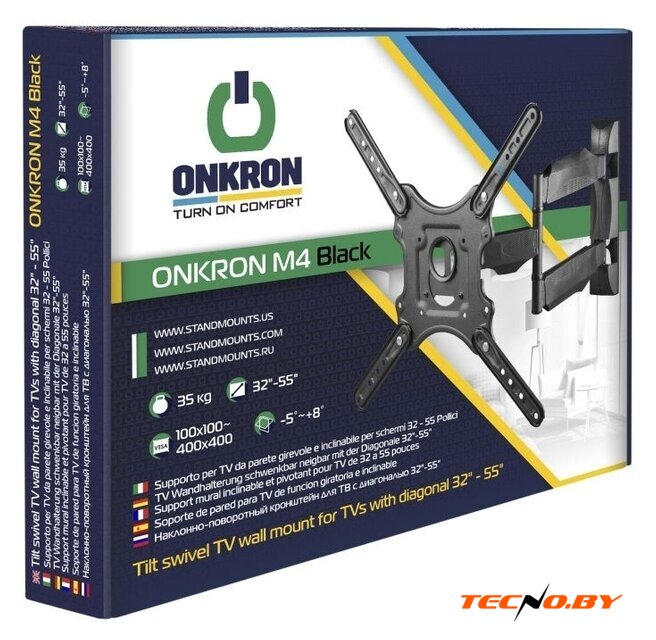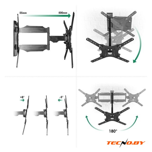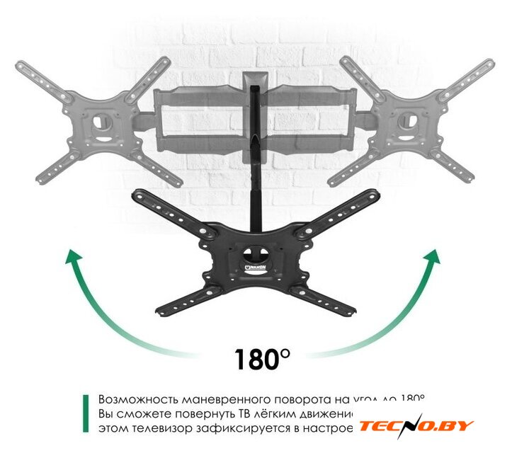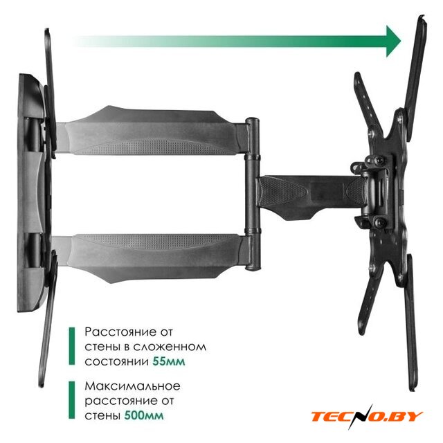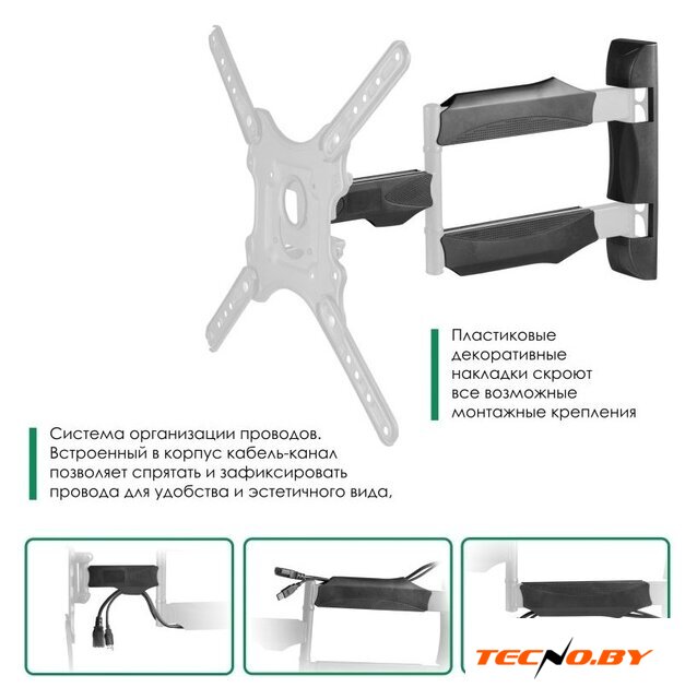 для ЖК-телевизоров, 32-55", настенный, поворотный, кабель-канал, наклон 25°, поворот 90°, цвет черный