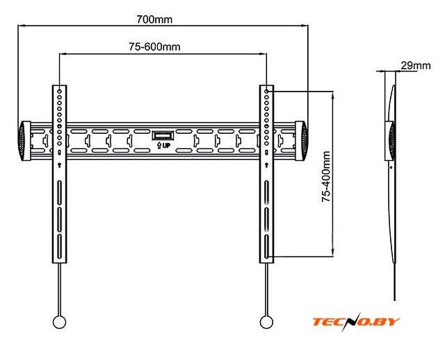 для ЖК-телевизоров, 32-70", настенный, встроенный уровень, цвет черный