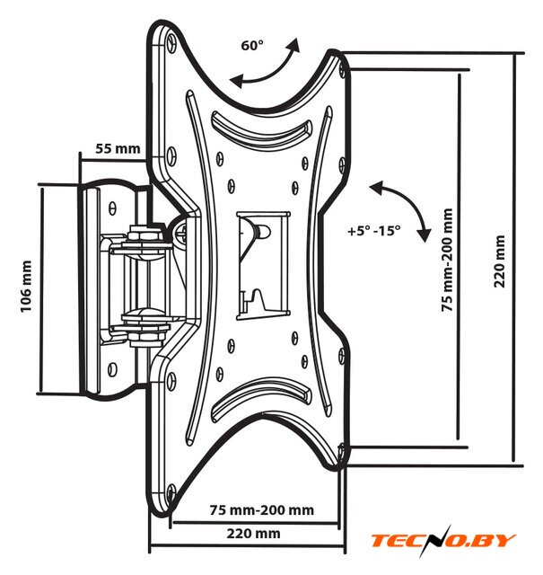 настенный кронштейн для ЖК-телевизора 23-42", наклон 20°, поворот 60°, цвет черный