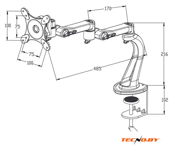настенный кронштейн для ЖК-телевизора 60-100", наклон 15°, поворот 45°, цвет черный