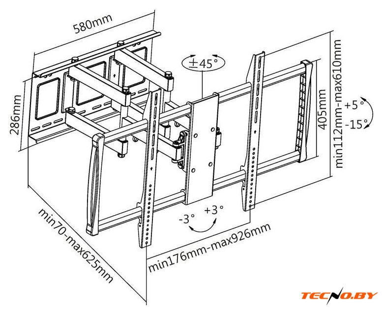 | Расстояние от стены (потолка) | 70 — 625 мм |