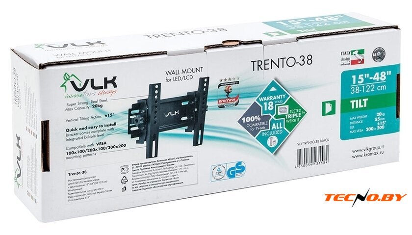 настенный кронштейн для ЖК-телевизора/для плазменного телевизора 26-55", наклон 15°, цвет черный