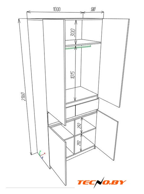 шкаф распашной, для жилой комнаты/для спальни, двухдверный, наполнение комбинированное, 1 полка, цвет: белый, 78.2x50.2x190 см
