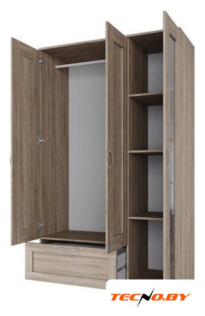 шкаф распашной, для спальни/для жилой комнаты/для прихожей, трехдверный, наполнение платяное, цвет: дерево средних тонов, 120.2x54.3x205.5 см