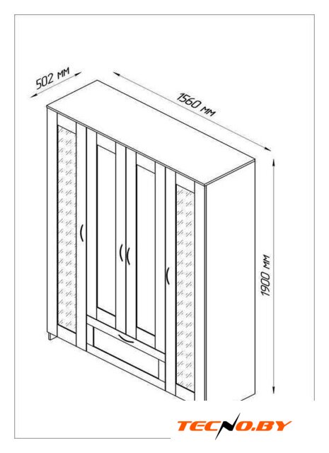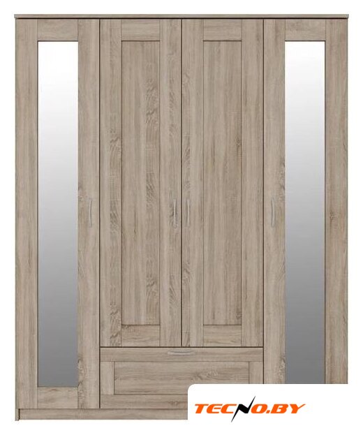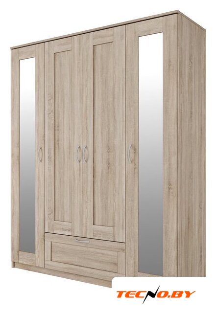 шкаф распашной, для спальни/для жилой комнаты/для прихожей, четырехдверный, наполнение платяное, зеркало, цвет: дерево светлое, 160.1x53.8x205.4 см