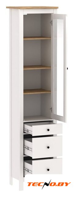 шкаф-витрина, для жилой комнаты/для столовой, однодверный, 3 полки, цвет: белый, 51.2x41.4x215.5 см