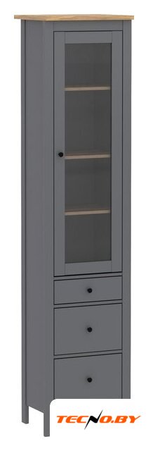шкаф-витрина, для жилой комнаты/для столовой, однодверный, 3 полки, цвет: серый, 49.6x41.4x215.5 см