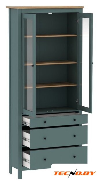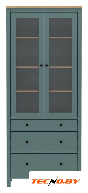 шкаф-витрина, для жилой комнаты/для столовой, двухдверный, 3 полки, цвет: зеленый, 90.4x41.4x215.5 см