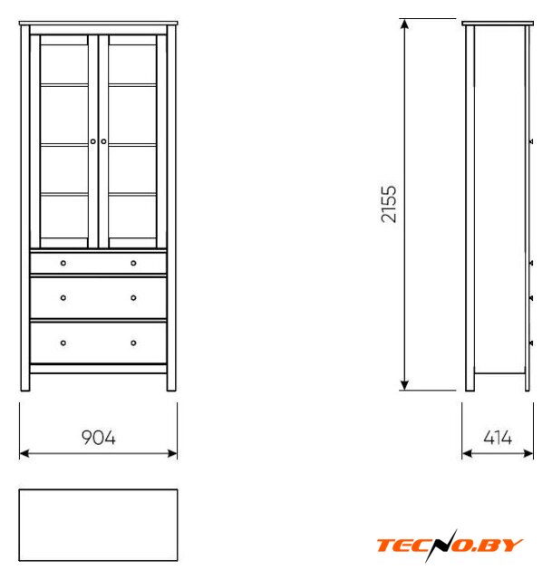 шкаф-витрина, для жилой комнаты/для столовой, двухдверный, 3 полки, цвет: белый, 92x41.4x215.5 см
