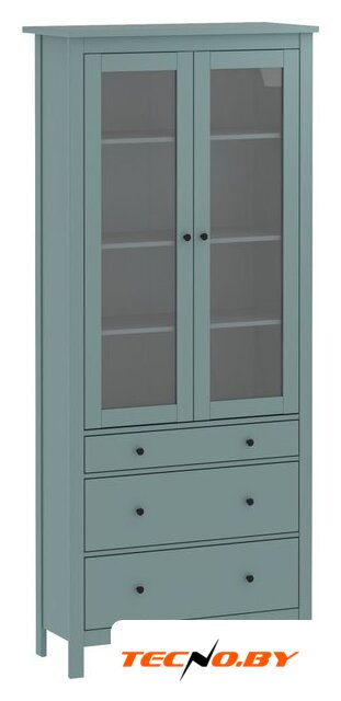 шкаф-витрина, для жилой комнаты/для столовой, двухдверный, 3 полки, цвет: зеленый, 90.4x41.4x215.5 см
