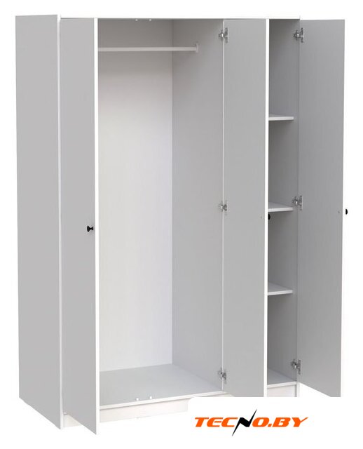 шкаф распашной, для жилой комнаты/для прихожей/для спальни, двухдверный, наполнение многоцелевое, 3 полки, цвет: белый, 100x36.3x232.8 см