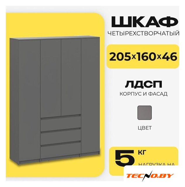 шкаф распашной, для спальни/для жилой комнаты, четырехдверный, наполнение платяное, цвет: дерево средних тонов/белый, 160.1x46x210 см