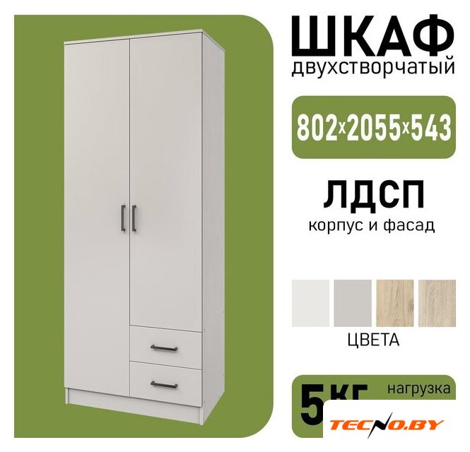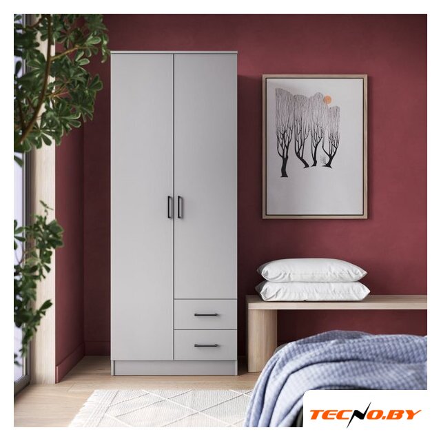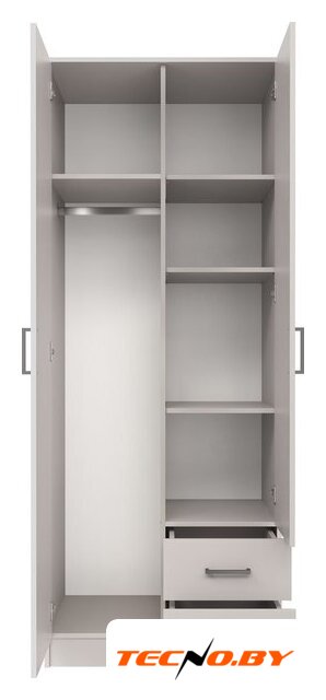 шкаф распашной, для жилой комнаты/для прихожей/для спальни, двухдверный, наполнение многоцелевое, 2 полки, цвет: дерево светлое/дерево с серым оттенком/белый, 75x60.8x232.8 см