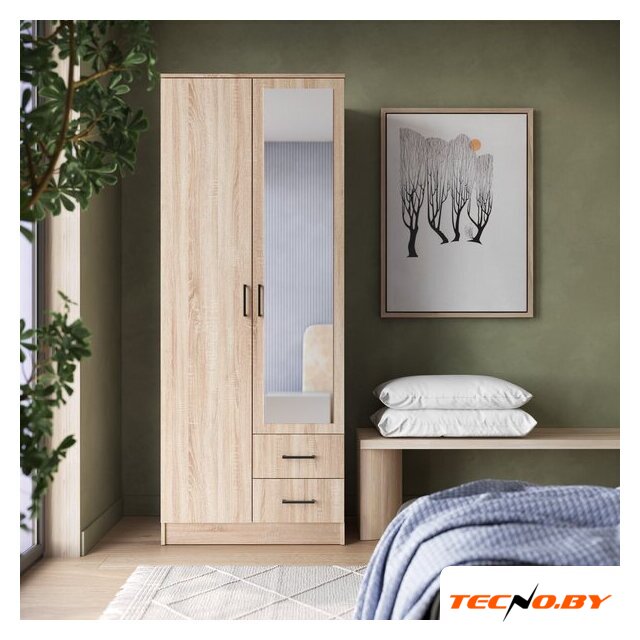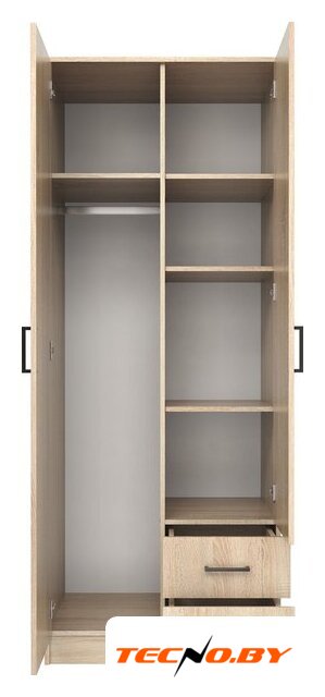 шкаф распашной, для жилой комнаты/для прихожей/для спальни, двухдверный, наполнение многоцелевое, 2 полки, цвет: дерево светлое/дерево с серым оттенком/белый, 75x60.8x232.8 см