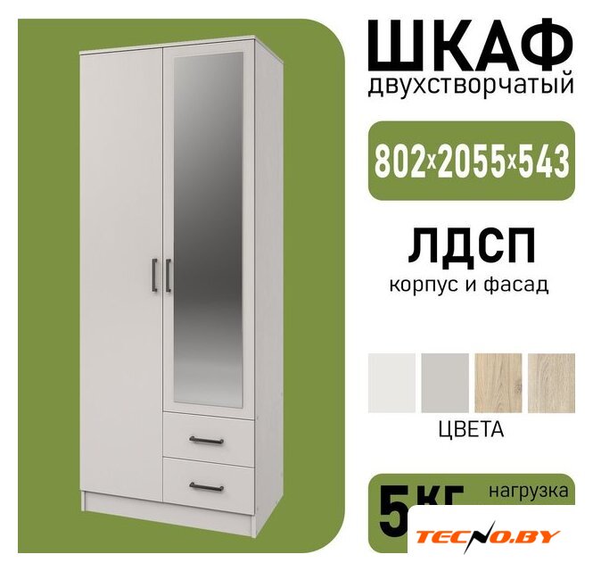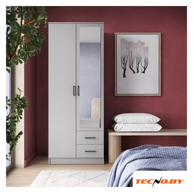 шкаф распашной, для жилой комнаты/для прихожей/для спальни, двухдверный, наполнение платяное, 2 полки, цвет: серый, 75x60.8x232.8 см