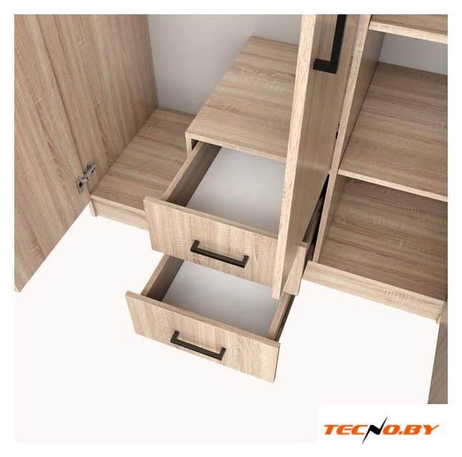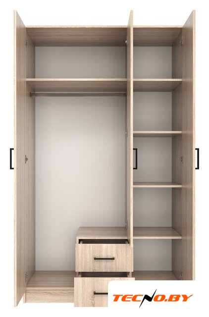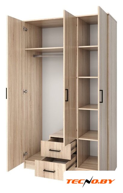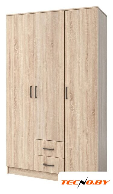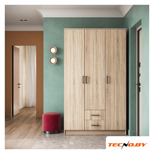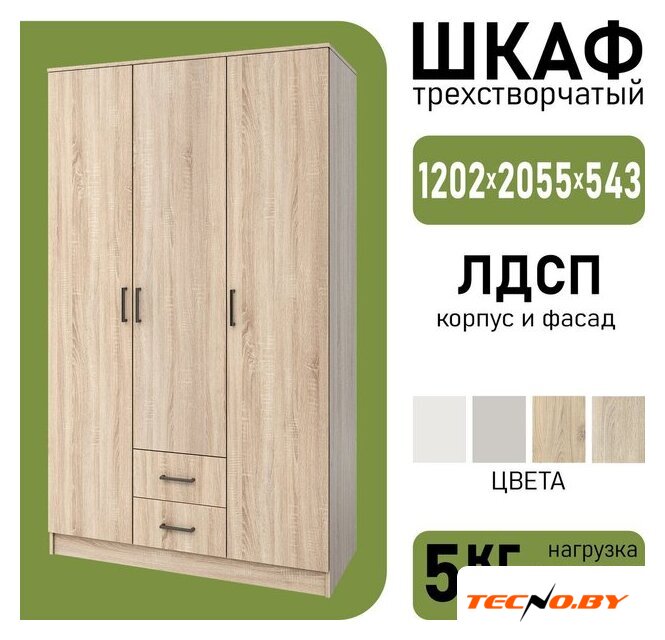шкаф распашной, для жилой комнаты/для прихожей/для спальни, трехдверный, наполнение комбинированное, зеркало, 5 полок, цвет: дерево светлое, 117.1x50.2x190 см