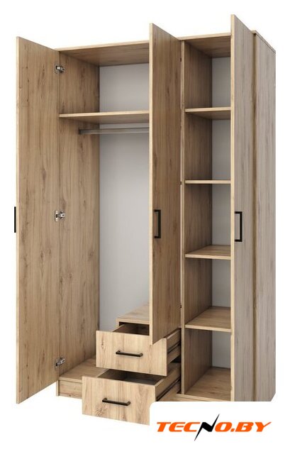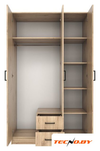 шкаф распашной, для жилой комнаты/для прихожей/для спальни, трехдверный, наполнение многоцелевое, 5 полок, цвет: бежевый, 120.1x50.6x221.6 см