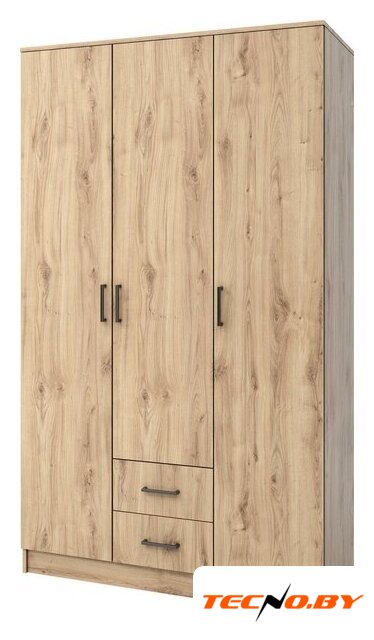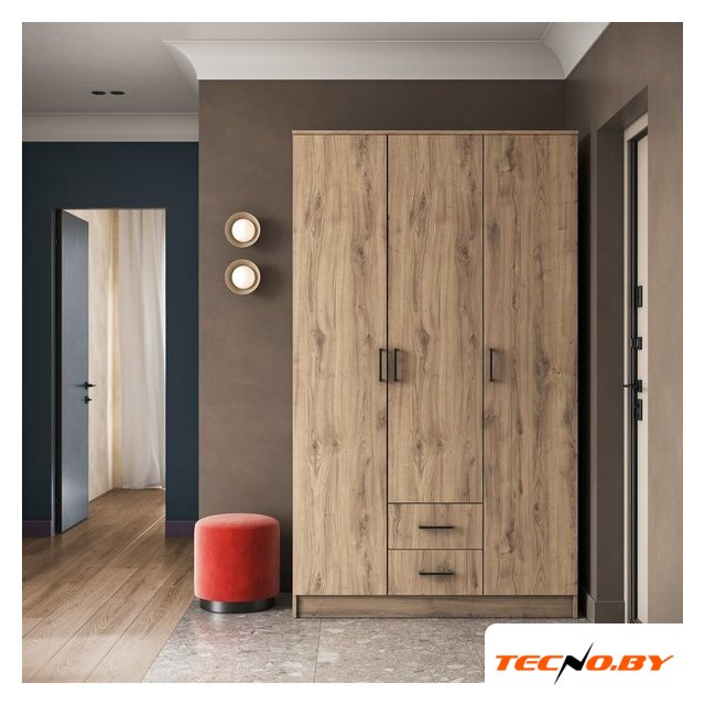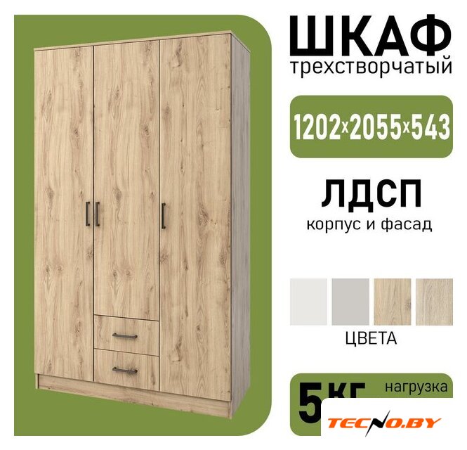 шкаф распашной, для спальни/для жилой комнаты/для прихожей, трехдверный, наполнение платяное, зеркало, цвет: дерево средних тонов, 120.2x54.3x205.5 см