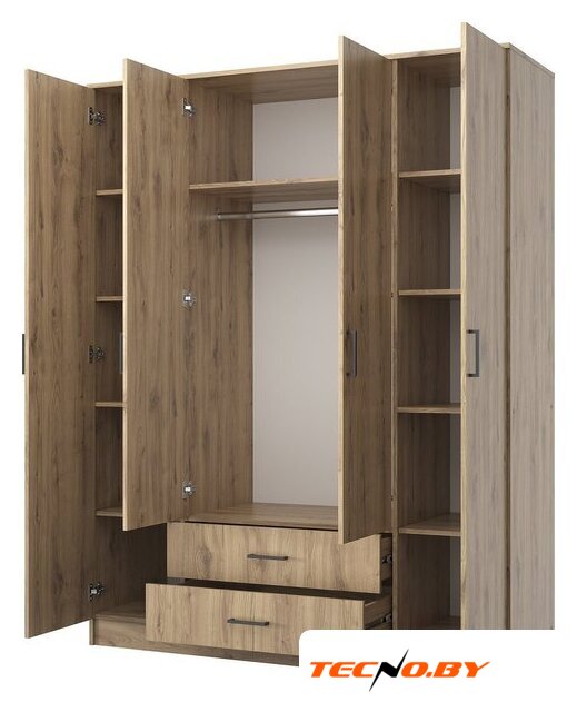 шкаф распашной, для жилой комнаты/для прихожей/для спальни, четырехдверный, наполнение бельевое, 8 полок, цвет: серый, 160.1x50.6x221.6 см