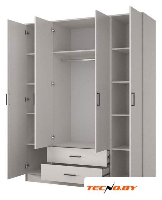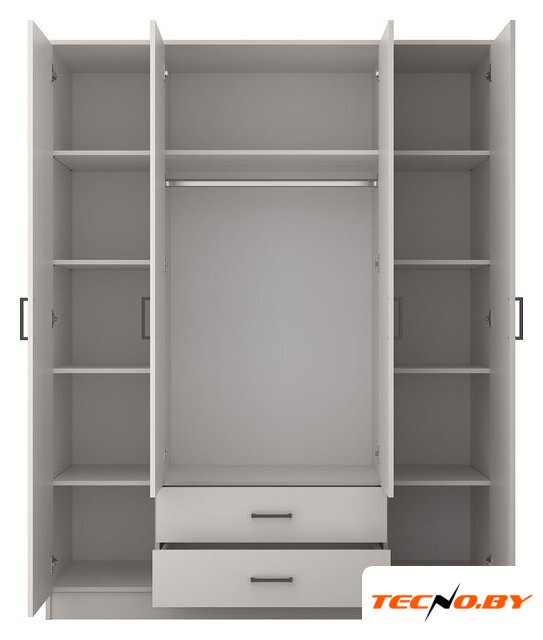 шкаф распашной, для жилой комнаты/для прихожей/для спальни, четырехдверный, наполнение бельевое, 8 полок, цвет: серый, 160.1x50.6x221.6 см