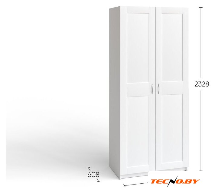 шкаф распашной, для жилой комнаты/для прихожей/для спальни, двухдверный, наполнение многоцелевое, 2 полки, цвет: белый, 100x60.8x232.8 см