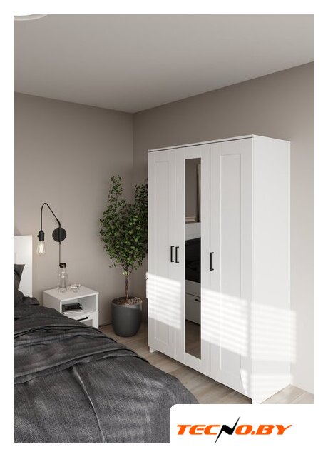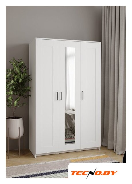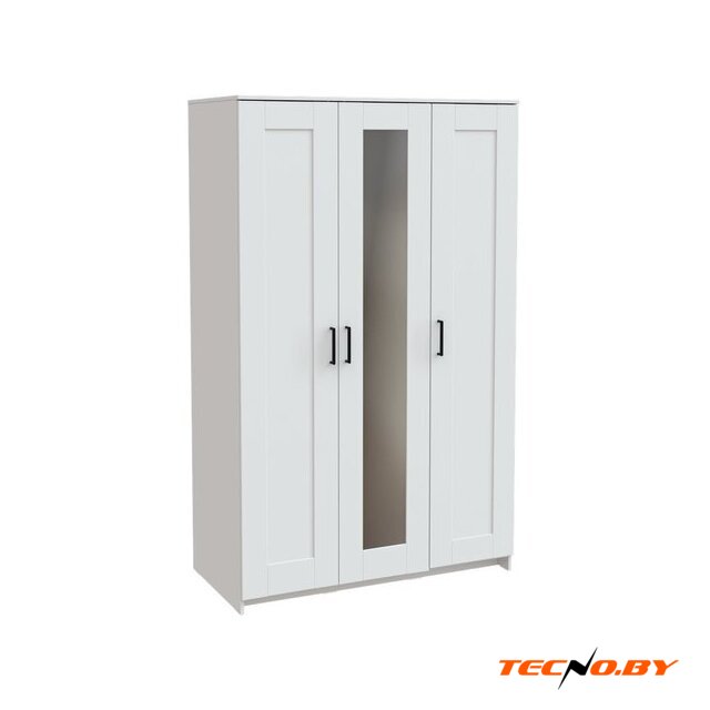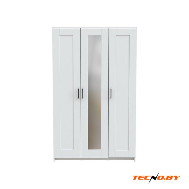 шкаф распашной, для спальни/для жилой комнаты/для прихожей, трехдверный, наполнение платяное, зеркало, цвет: белый, 120.2x54.3x205.5 см