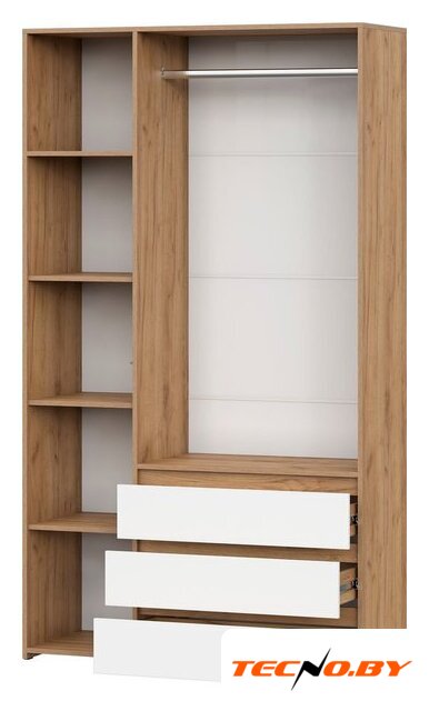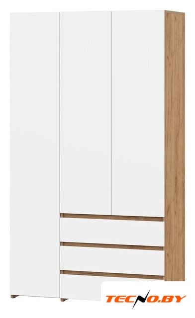 шкаф распашной, для спальни/для жилой комнаты, трехдверный, наполнение платяное, 5 полок, цвет: дерево с яркой текстурой/серый, 120x46.4x210.6 см