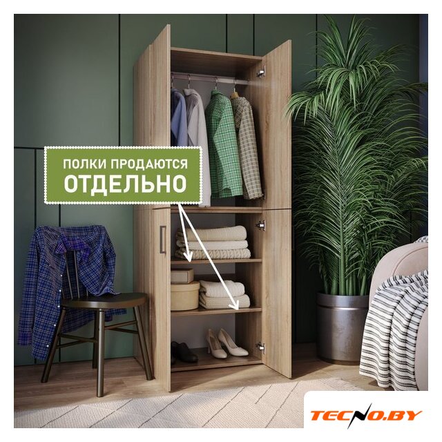 шкаф распашной, для жилой комнаты/для прихожей/для спальни, двухдверный, наполнение многоцелевое, 2 полки, цвет: белый, 75x38.3x232.8 см