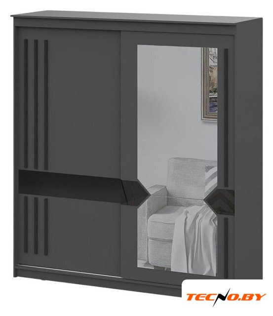 шкаф-купе, для жилой комнаты/для спальни, двухдверный, наполнение платяное, зеркало, цвет: дерево с яркой текстурой/белый, 140x58.8x229.2 см