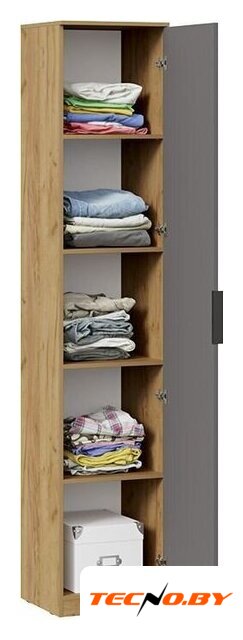 шкаф-пенал, для жилой комнаты/для спальни, однодверный, наполнение многоцелевое, 4 полки, цвет: дерево светлое/белый, 41.8x45x220 см