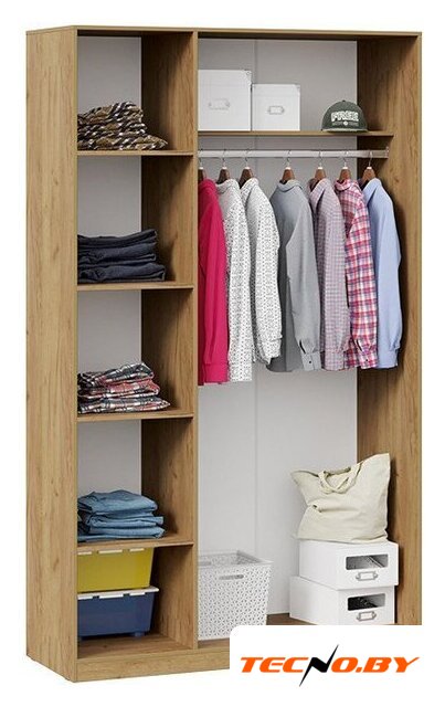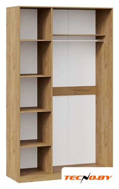 шкаф распашной, для спальни/для жилой комнаты, трехдверный, наполнение платяное, зеркало, 7 полок, цвет: бежевый/дерево темное, 136.4x56.8x230 см