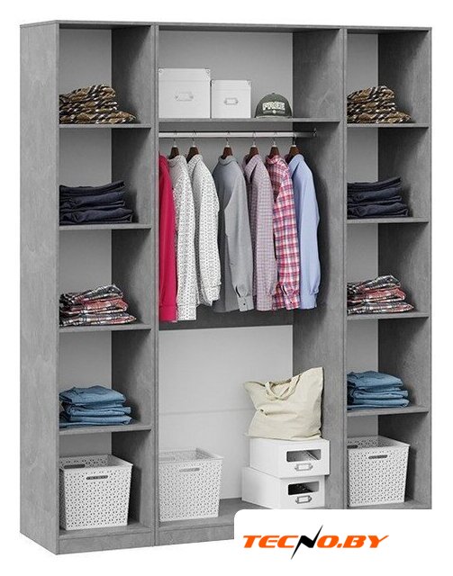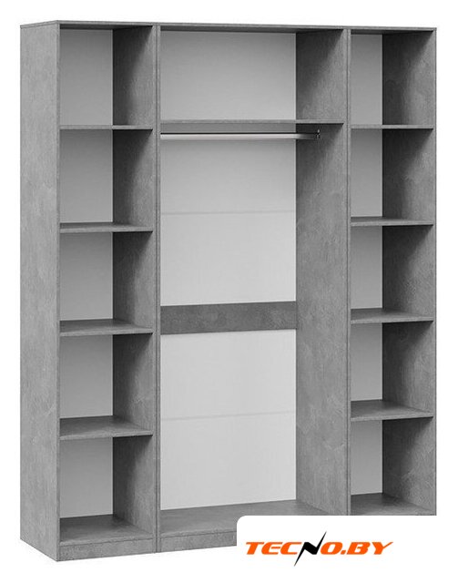шкаф распашной, для спальни/для жилой комнаты, трехдверный, наполнение платяное, зеркало, цвет: белый/серый, 152.8x58x230 см