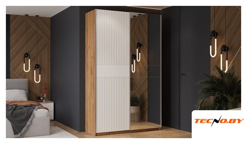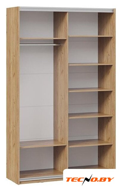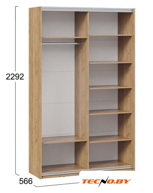 шкаф-купе, для жилой комнаты/для спальни, трехдверный, наполнение платяное, зеркало, цвет: дерево с яркой текстурой/белый, 176.5x58.8x229.2 см