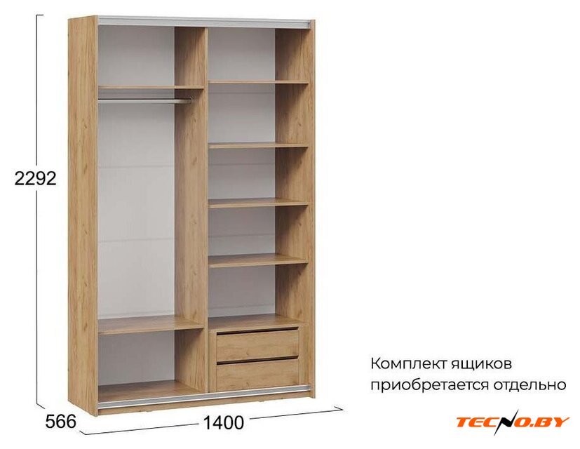 шкаф-купе, для жилой комнаты/для спальни, двухдверный, наполнение платяное, зеркало, 7 полок, цвет: серый/черный, 200.1x60x220 см