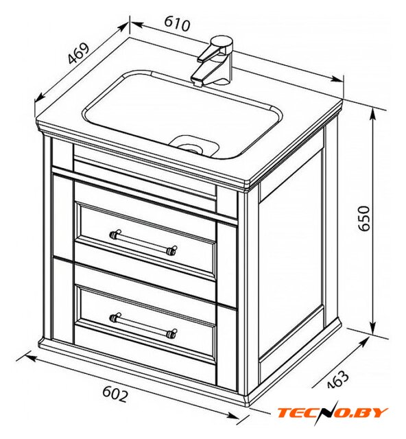 Габариты умывальника составляют 61 см в ширину и 46.9 см в глубину, что делает его удобным и для больших, и для небольших ванных комнат. Несмотря на компактные размеры, он позволяет комфортно использовать его всеми членами семьи. Это универсальное решение для тех, кто ищет оптимальное соотношение стиля, качества и функциональности.