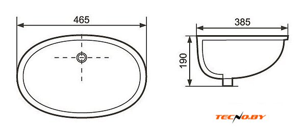 60x36 см, с одной чашей, накладной, фарфор, крепление на столешницу