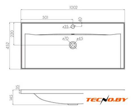 Одним из важных преимуществ модели является наличие перелива, предотвращающего переполнение чаши водой, что добавляет спокойствия в дни интенсивной эксплуатации. Ширина умывальника составляет 100.2 см, что обеспечивает достаточное пространство для комфортного использования, при этом глубина в 45.2 см и высота 14.5 см делают его компактным и легко вписывающимся в любую ванную комнату.