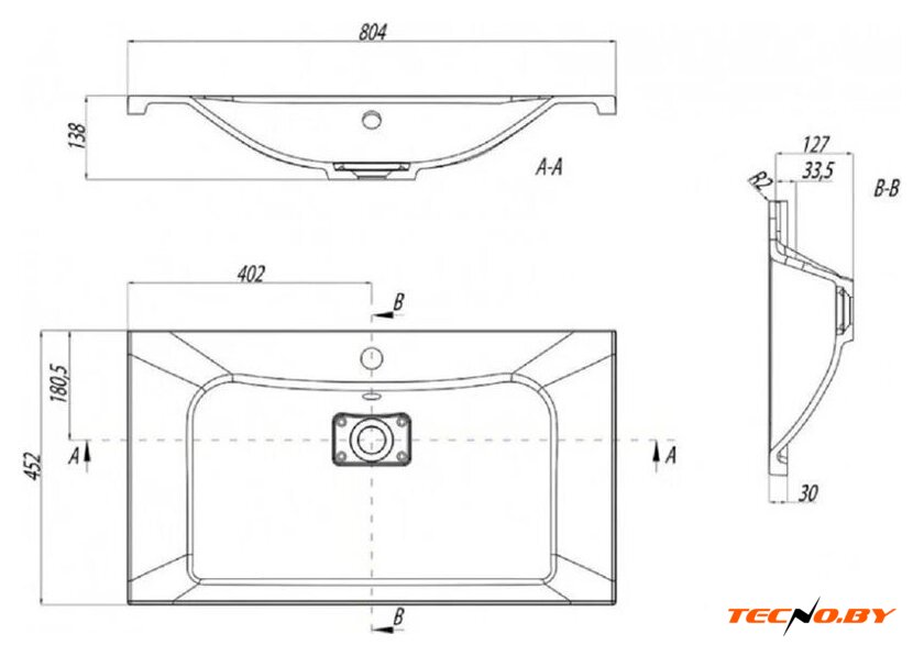 80.2x45 см, с одной чашей, врезной, санитарная керамика, крепление на мебельный шкаф/на столешницу